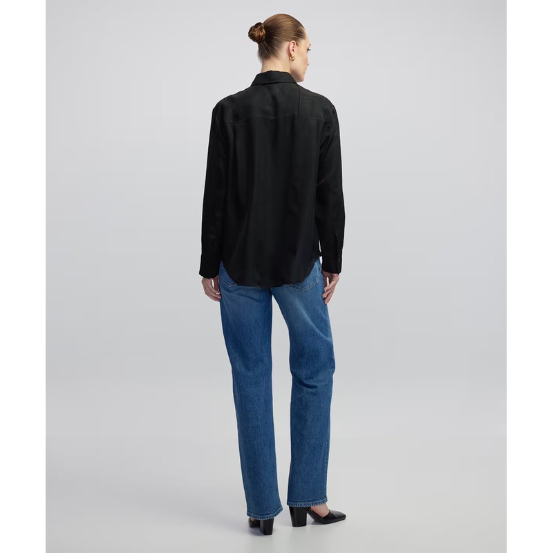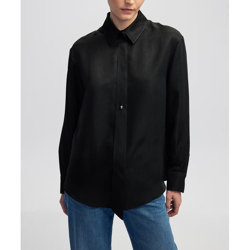 Patı ve yakasında bulunan metal top düğmelerle karakteristik bir görünüm edinen gömlek, rahat kesimiyle konforu da geri plana atmıyor. Özellikle zarif ofis görünümlerinde ve gündüzden geceye uzanan programlarda joker bir eşlikçi olmaya aday. Üretim Ülkesi Türkiye Renk Siyah Kategori Gömlek Kumaş Karışımı Ana Kumas-(%100 ASETAT) Ürün Detay 1 : Aksesuar Cep : Cepsiz Kapama Şekli : Düğme Kapama Kalıp : Rahat Kesim Boy/Ölçü : Regular Desen : Düz Kalınlık : Orta Kol Boyu : Uzun Kol Kol Tipi : Düşük Omuz Yaka : Gömlek Yaka Parça Sayısı : 1 Parça Ürün Ağırlığı : 465 GrÖdeme Seçenekleri