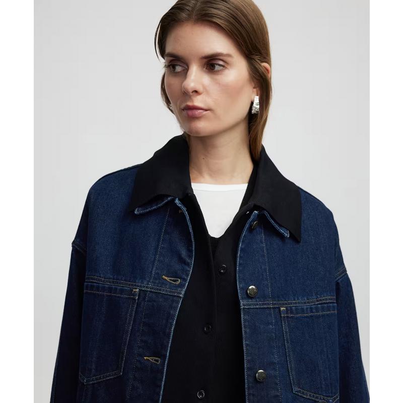 İkonik denim dokulu mont, triko mix'i ile güncellenen bu cool tasarımla ön plana çıkıyor. Rahat kesime sahip denim mont, gardıropların yatırımlık parçaları arasında yer alıyor. Üretim Ülkesi Malezya Renk İndigo Kategori Mont Manken Ölçüleri Giydiği Beden 36 / S Manken Boyu 178cm Ölçüler 85/62/92 Kumaş Karışımı Ana Kumas-(%100 PAMUK) ; Garni1-(%60 VISKOZ, %40 POLYAMID) Ürün Detay 1 : Kumaş Mixli Cep : Cepli Kapama Şekli : Düğme Kapama Kalıp : Rahat Kesim Boy/Ölçü : Kısa Astar : Astarsız Desen : Düz Kalınlık : Orta Kol Tipi : Düşük Omuz Yaka : Gömlek Yaka Parça Sayısı : 1 Parça Ürün Ağırlığı : 960 Gr