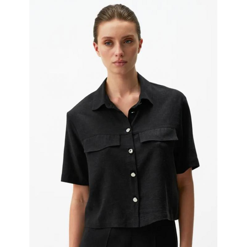 Jimmy Key Kısa Kollu Cep Detaylı Kadın Keten Gömlek 24SG044003 (24SG044003)
