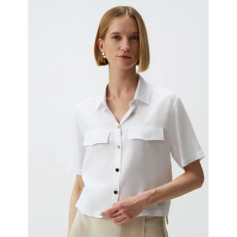 Jimmy Key Kısa Kollu Cep Detaylı Kadın Keten Gömlek 24SG044003 (24SG044003)