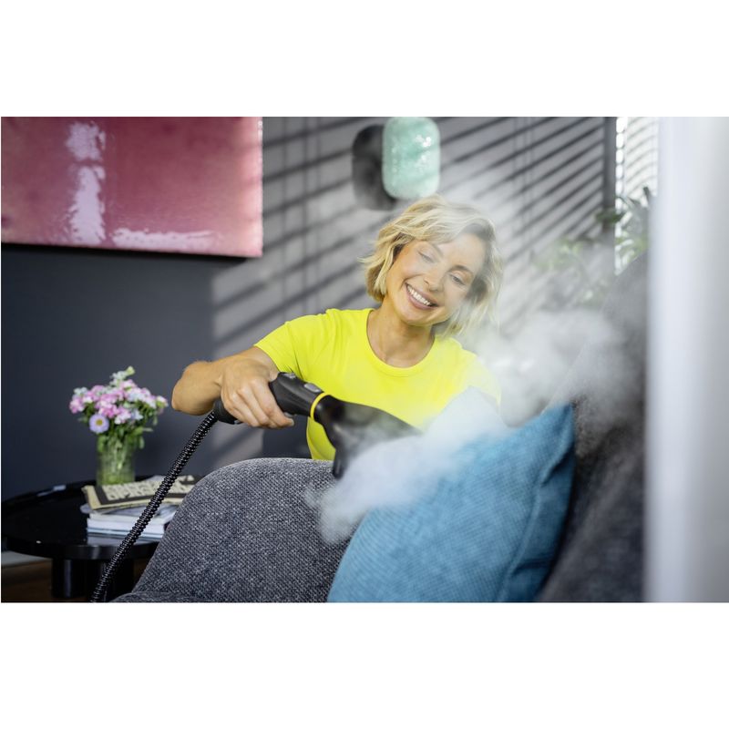 Kırışıklıklara elveda deyin! Buharlı Düzleştirici ile giysiler kısa sürede en iyi görünümlerine kavuşur. Ayrıca giysileri, perdeleri ve diğer birçok tekstili hızlı ve kolay bir şekilde tazeler ve kötü kokuları yok eder. Buharlı Düzleştirici aparatı, aksesuar aparatlı her Kärcher buharlı temizleyiciyi, kumaşın içine ultra kuru ve sıcak buharla nüfuz ederek lifleri özüne kadar tazeleyen bir buharlayıcıya dönüştürür. Aparatla buharlama sırasında oluşan yoğuşmuş su, lavaboya veya hatta buharlı temizleyicinin tankına boşaltılabilen ayrı bir tankta toplanır.