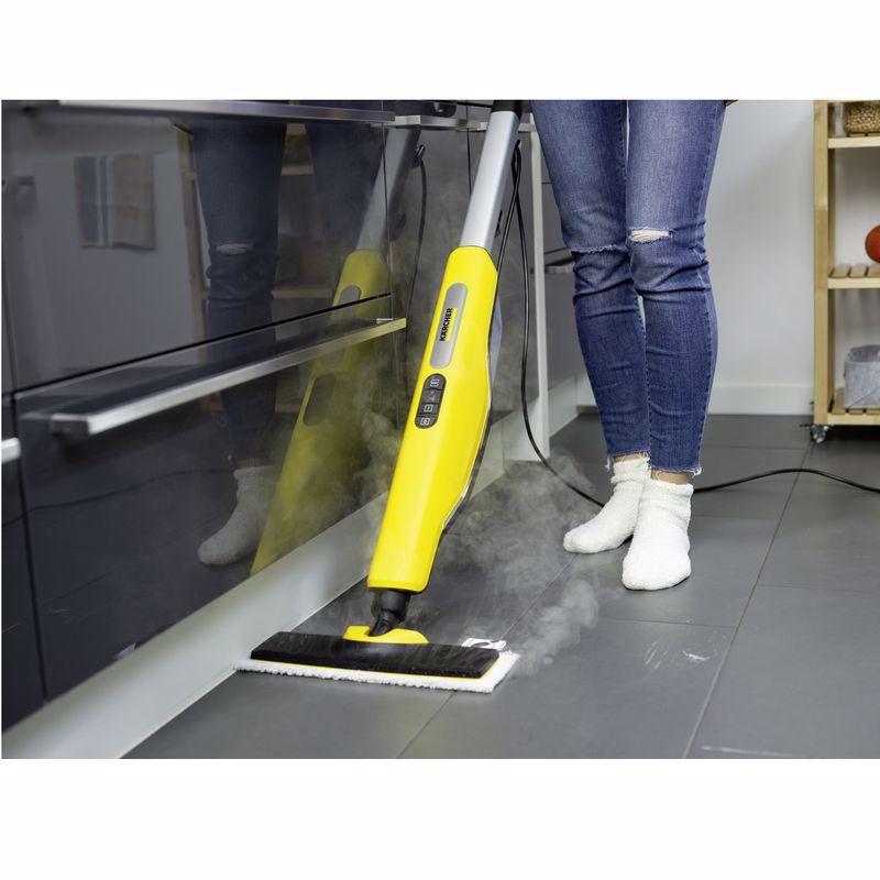 Karcher SC3 Upright EasyFix buharlı zemin temizleme makinesi, kullanımı son derece kolay olan üç adımlı buhar akış kontrolü sayesinde, tüm sert zeminleri - hatta ahşap yüzeyi bile - temizlemek için idealdir. Cihaz kısa sürede ısınır, kireç çözücü kartuş takılıp çıkartılabilir, su deposu sayesinde de kullanıma kolayca hazır olur. Cihazda bulunan farklı renkteki LED ışıkları aracılığıyla ürünün kullanım durumu takip edilebilir. Yüksek kaliteli mikfrofiber bezleriyle birlikte EasyFix zemin başlığı, paspas gibi geleneksel uygulamalardan elde edebileceğinizden daha kapsamlı bir temizlik sonucu almanızı sağlar. Ayrıca, halı üzerinde de kullanılabilmesi için aksesuarı mevcuttur.Yapılan testler,Karcher SC3 Upright EasyFix buharlı temizlik makineleri ile yapılan eksiksiz temizlik ile sert yüzeylerdeki bakterilerin (Staphylococcus aureus, Pseudomonas aeruginosa) ve virüslerin ( H1N1) %99,99'unu yok ettiğini göstermektedir.