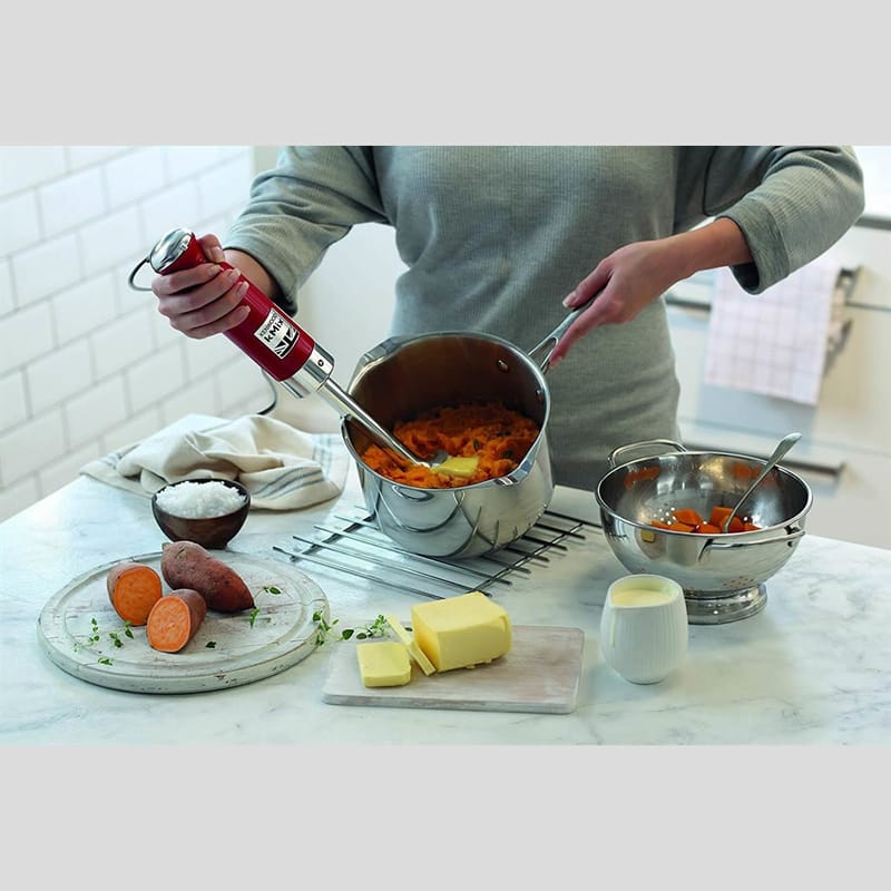 Kenwood Kmix şık el blenderi ile, tek bir düğmeye dokunarak güç ve kontrolü birleştirebilirsiniz. İhtiyacınız olan hızı seçebilir ve daha zorlu bir malzeme ile uğraşırken turbo özelliği kullanarak daha kısa sürede parçalayabilirsiniz.