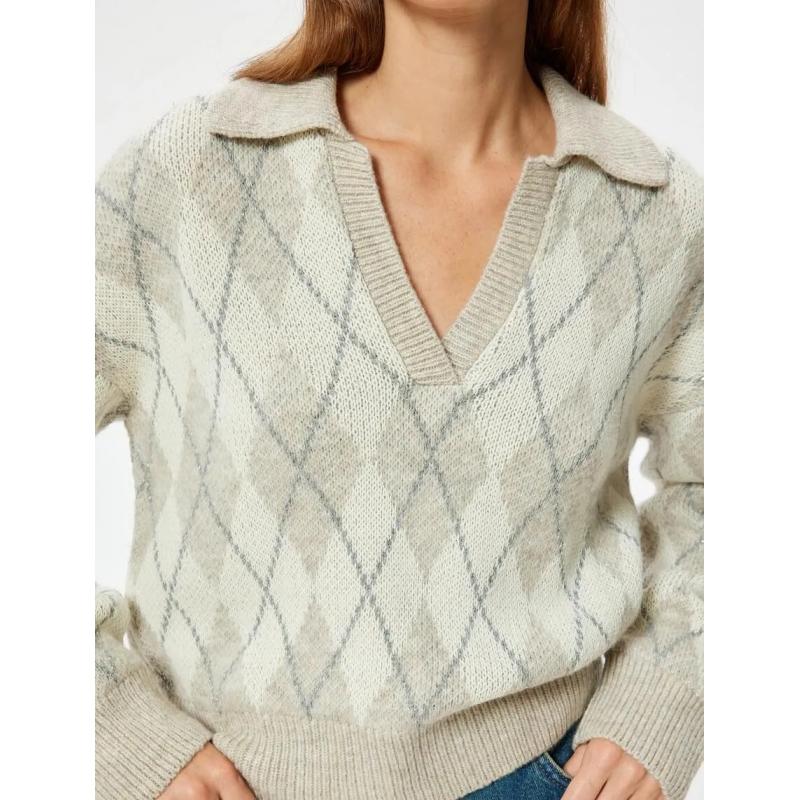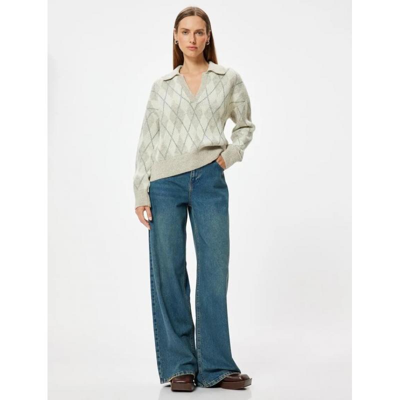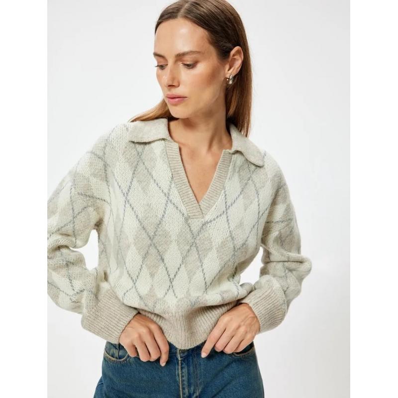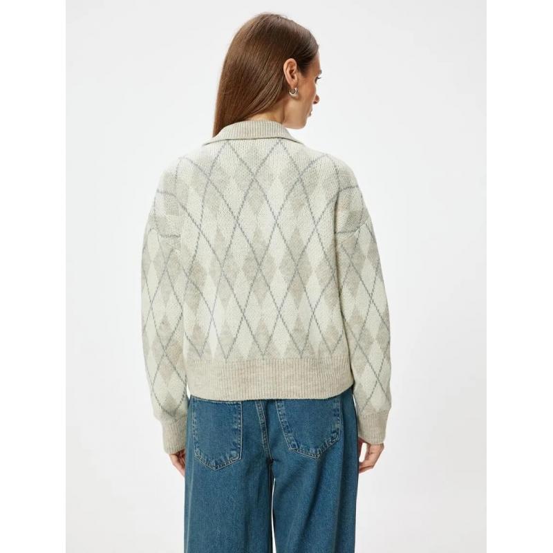 Koton Baklava Desenli Polo Yaka Kadın Triko Kazak 5WAK90229HT (5WAK90229HT)