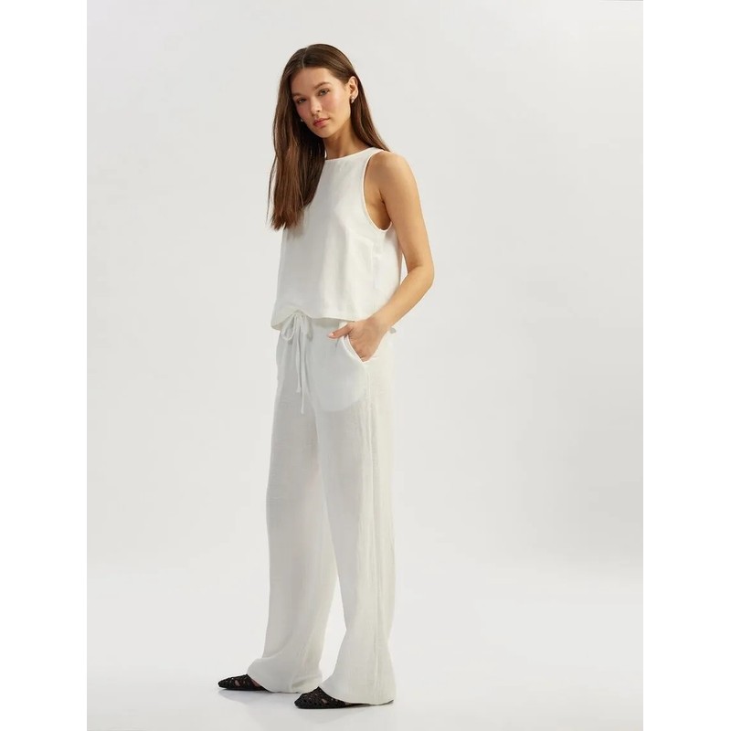 Koton Beli Bağcıklı Cepli Rahat Kesim Kadın Pantolon 5SAL40055IW (5SAL40055IW)