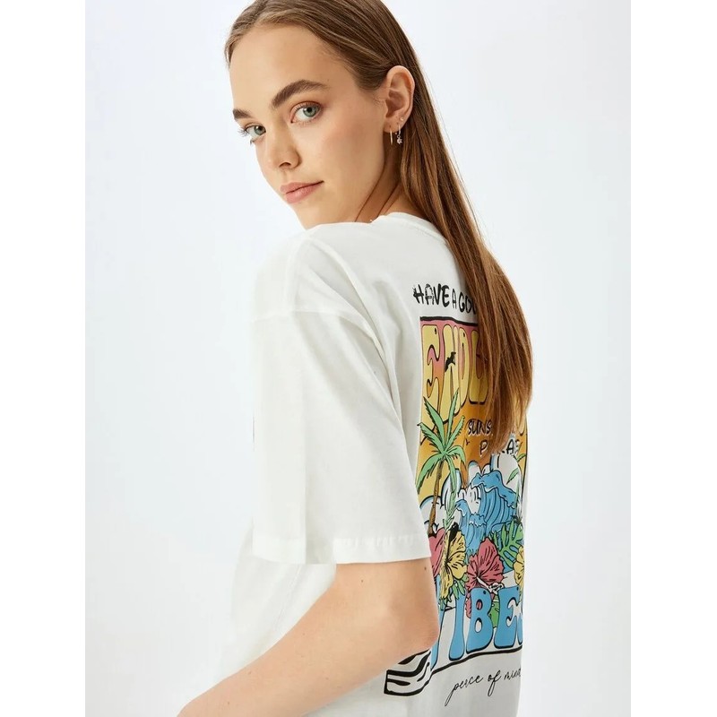 Koton Bisiklet Yaka Arkası Baskılı Kadın Oversize T-shirt 5SAL10245IK (5SAL10245IK)