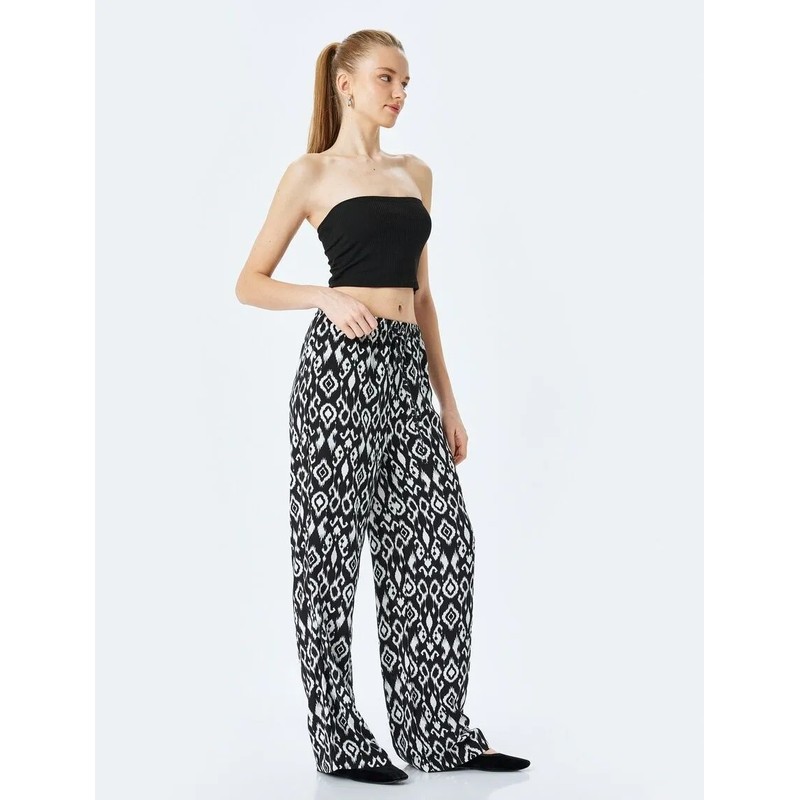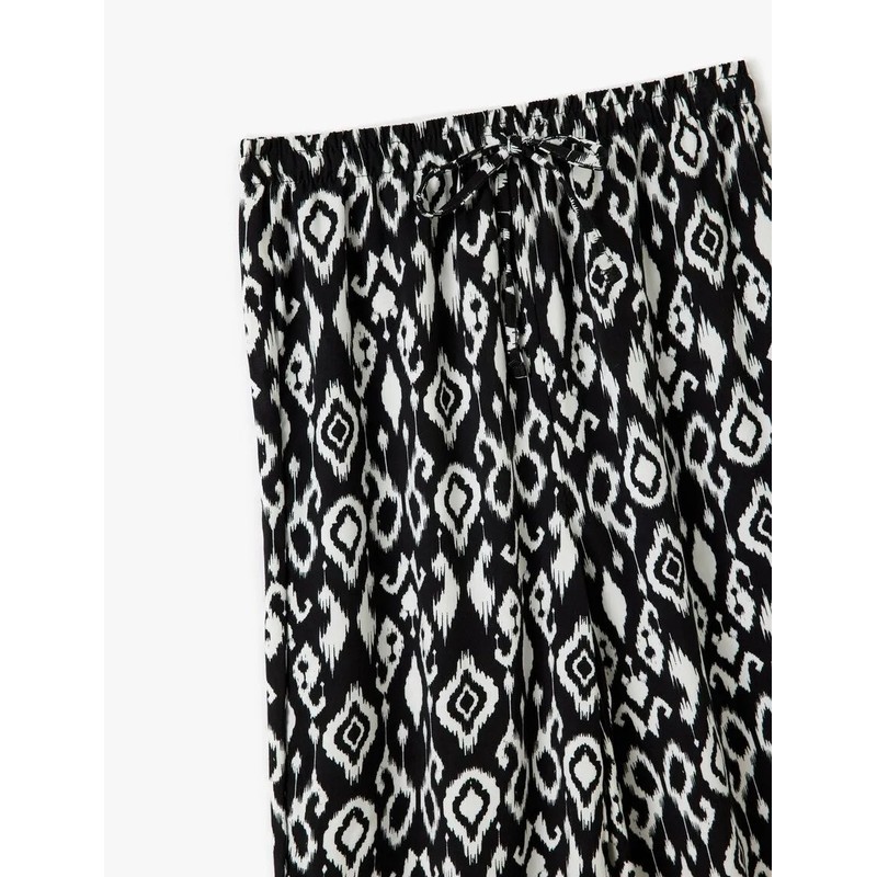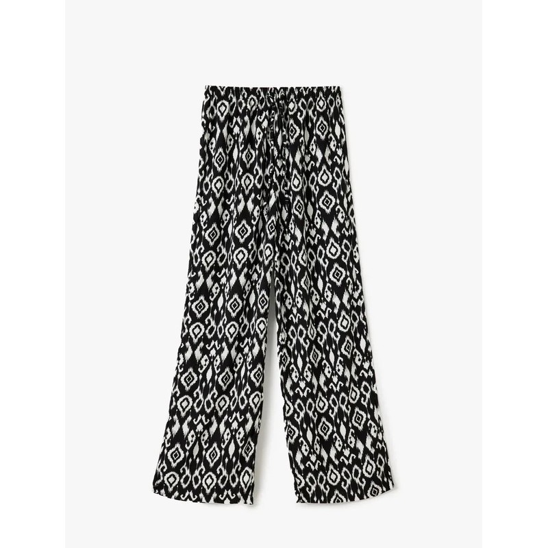 Koton Etnik Desenli Beli Bağcıklı Viskon Kadın Geniş Paça Pantolon 5SAL40022IW (5SAL40022IW)