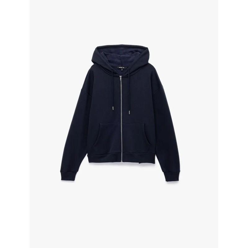 Koton Fermuarlı Kapüşonlu Kanguru Cepli Uzun Kollu Şardonlu Oversize Kadın Sweatshirt 6WAK10151NK (6WAK10151NK)