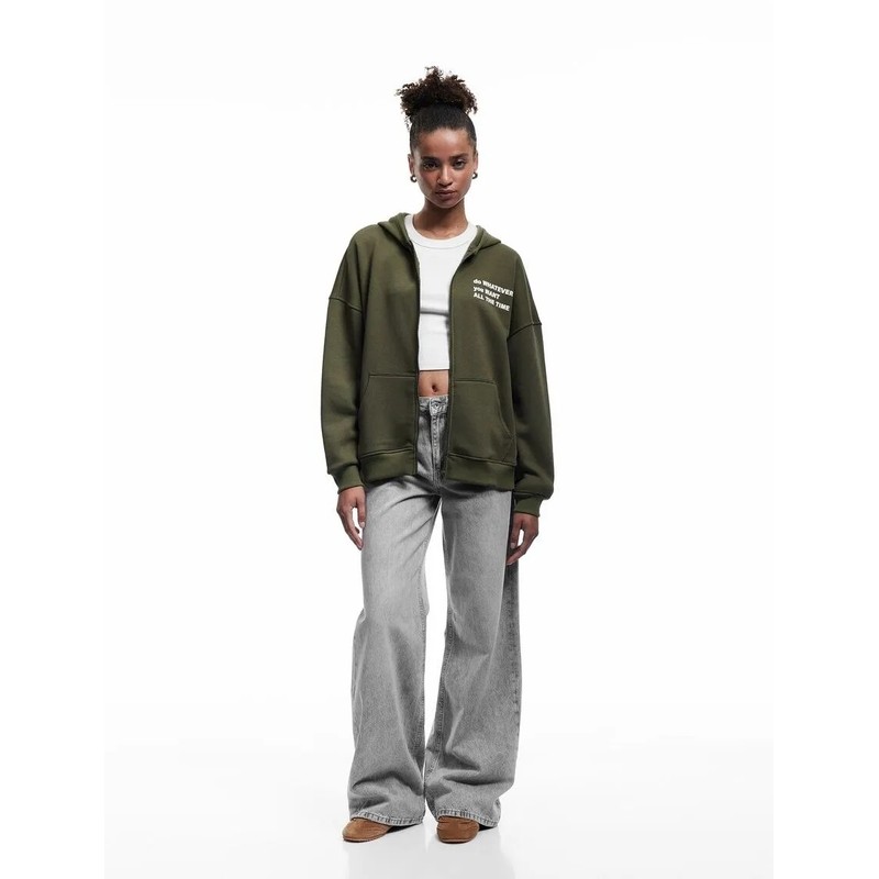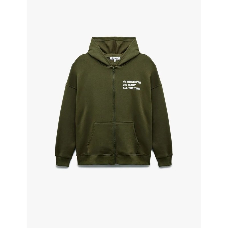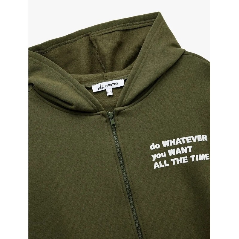 Koton Şardonlu Baskılı Fermuarlı Kapüşonlu Kadın Oversize Sweatshirt 6WAL10142IK (6WAL10142IK)
