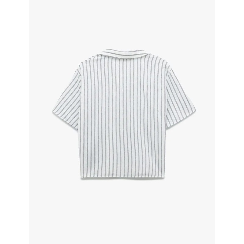 Koton Tek Cep Detaylı Kadın Kısa Kollu Çizgili Gömlek 5SAK60004PW (5SAK60004PW)