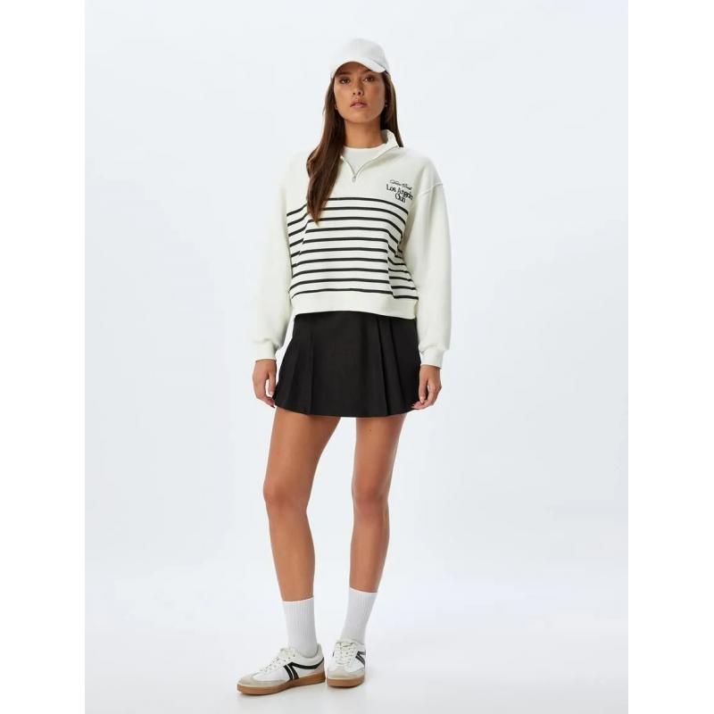Koton Üç İplik Şardonlu Yarım Fermuar Detaylı Kadın Dik Yaka Sweatshirt 5WAK10054EK (5WAK10054EK)