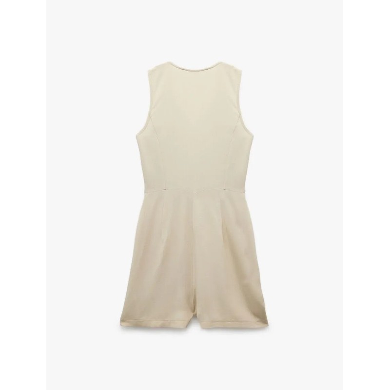 Koton V Yaka Kolsuz Düğmeli Keten Karışımlı Kadın Mini Tulum 5SAL40031IW (5SAL40031IW)