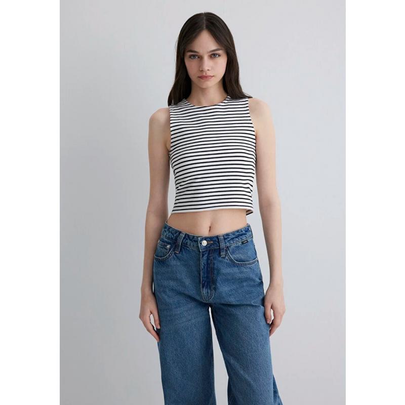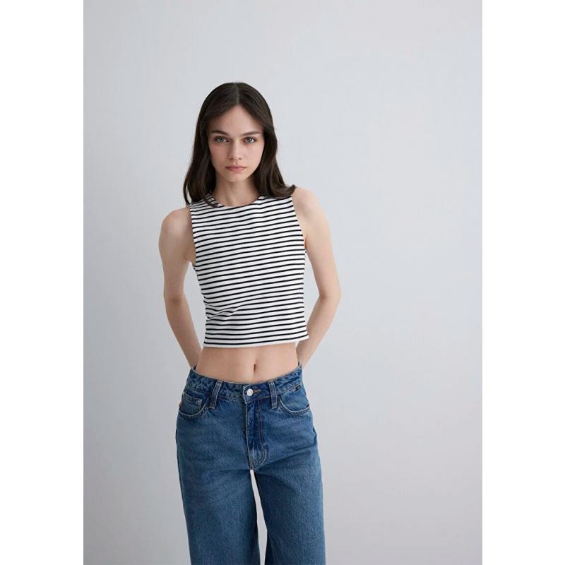 Mavi Çizgili Kadın Crop T-shirt (M1613118-85407)