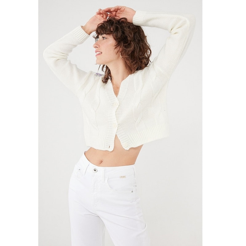 Mavi Düğmeli Beyaz Kadın Hırka (171486-34519)