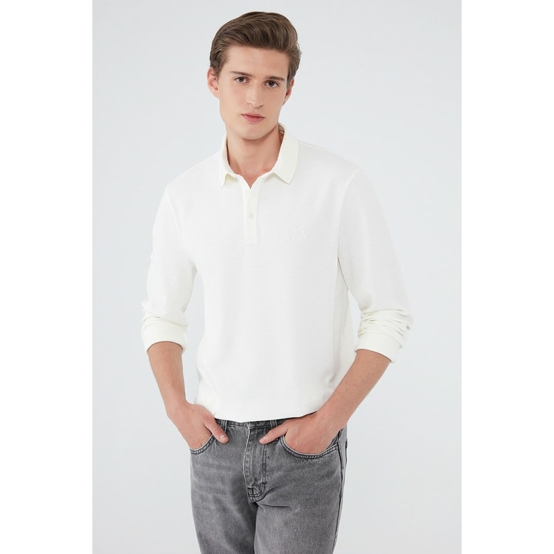 Mavi Erkek Uzun Kollu Beyaz Polo T-shirt (065018-34519)