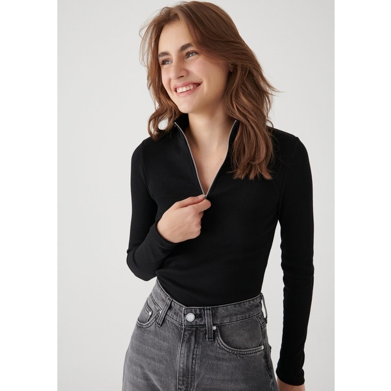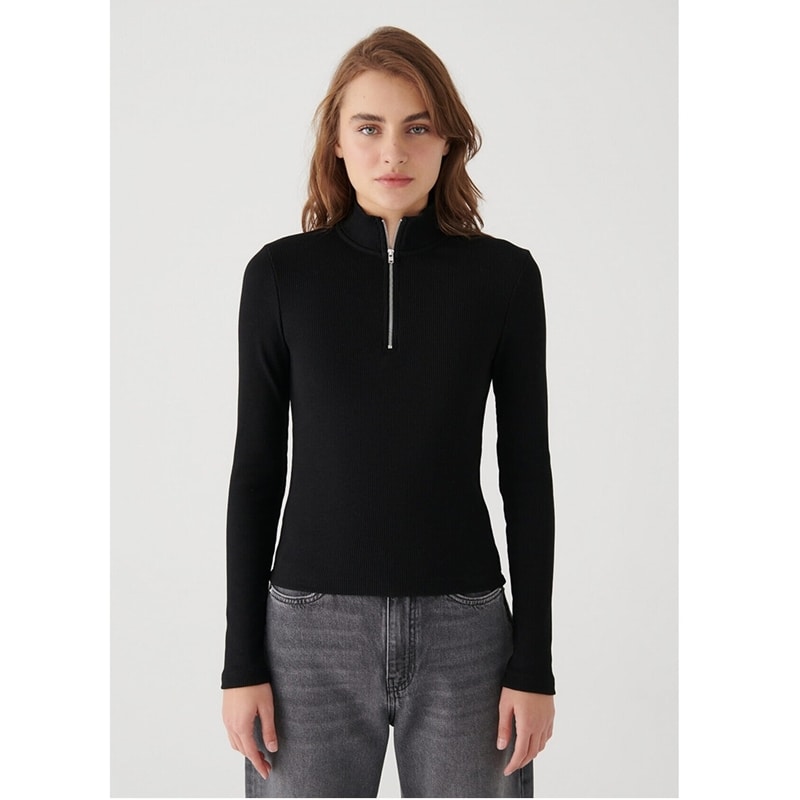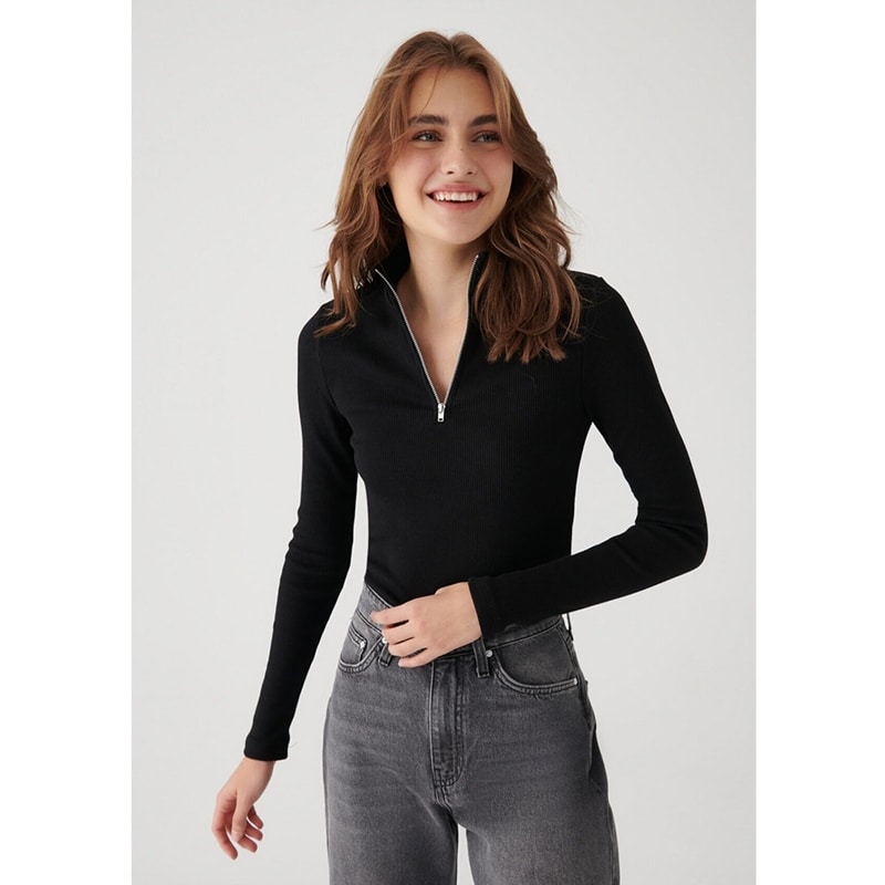 Mavi Fermuarlı Siyah Kadın T-shirt (M1610000-900)