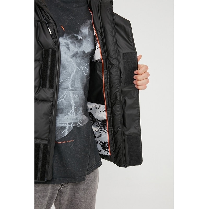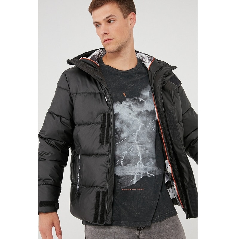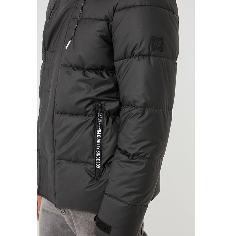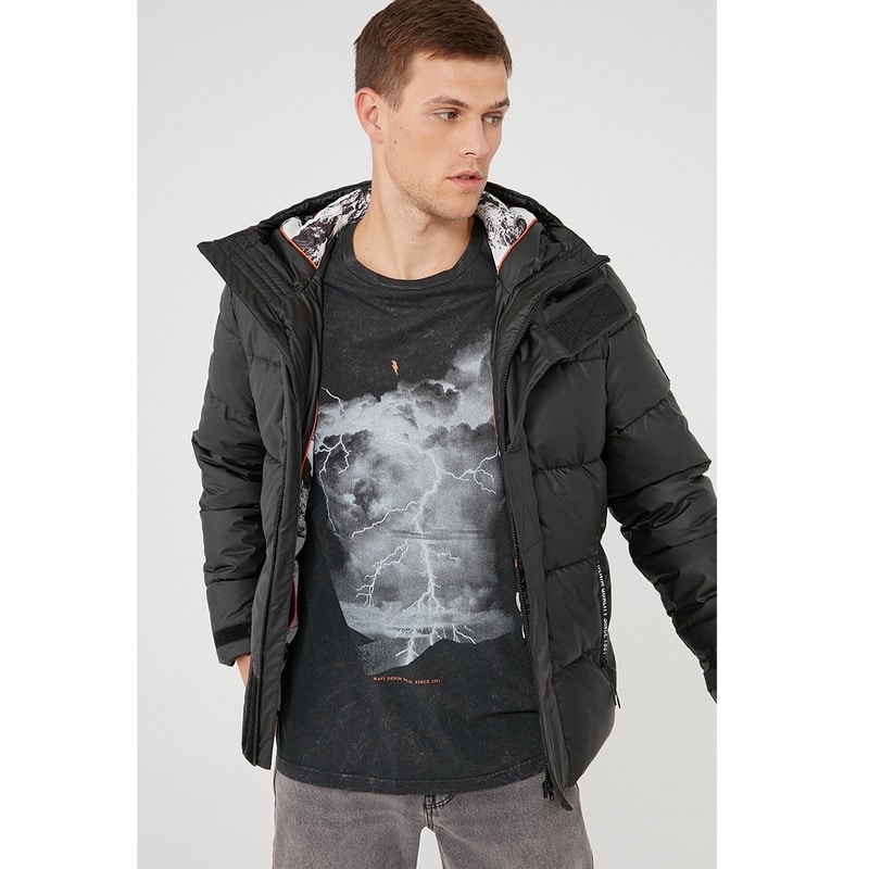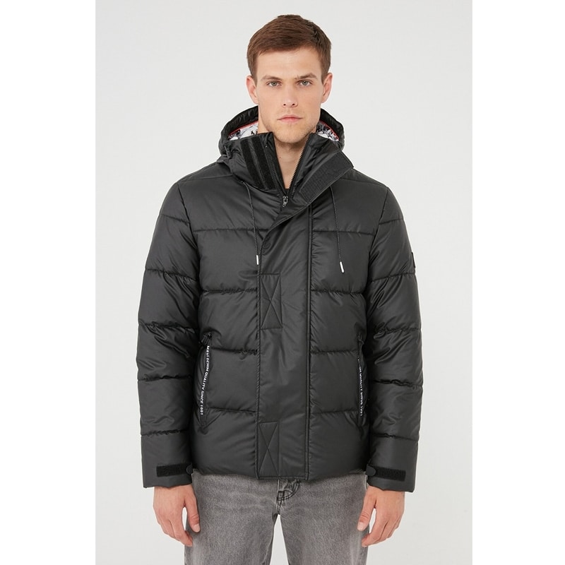 Mavi Kapüşonlu Siyah Erkek Şişme Mont (010425-900)
