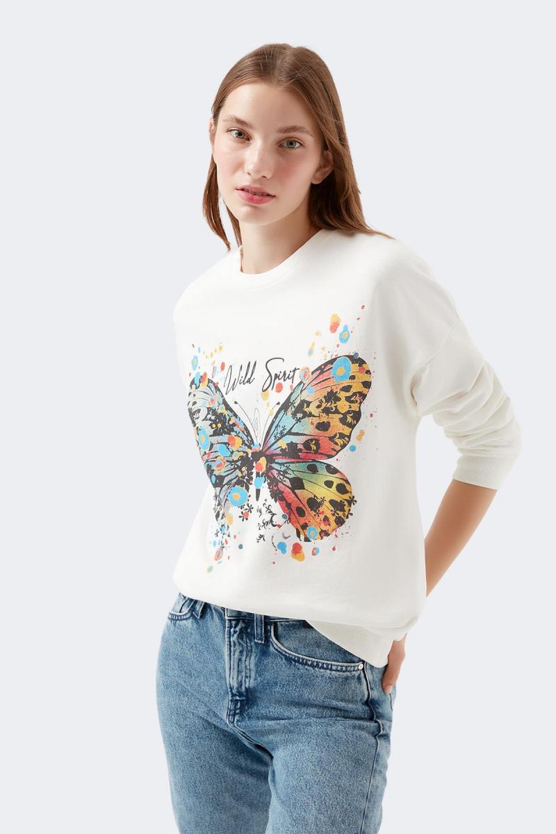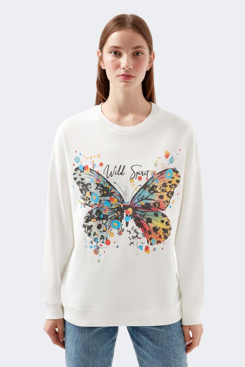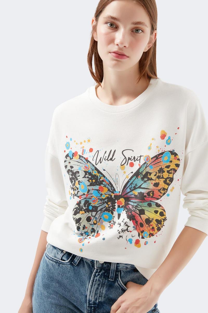 Mavi Kelebek Baskılı Kadın Sweatshirt (1600412-32158)
