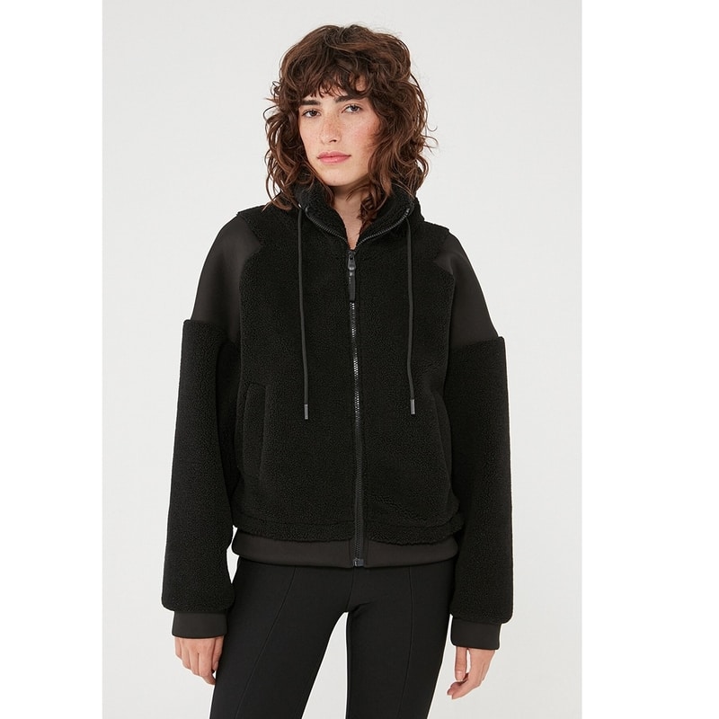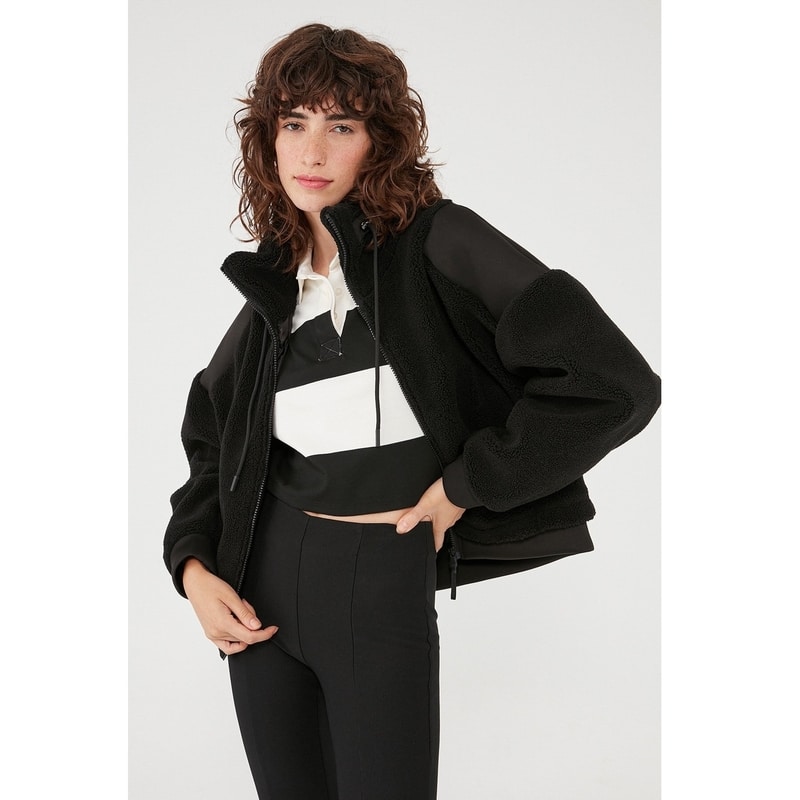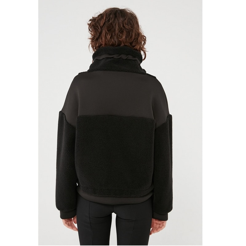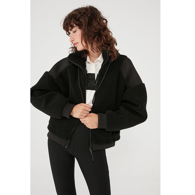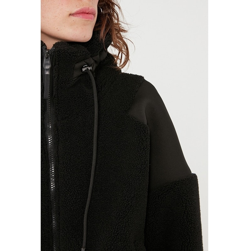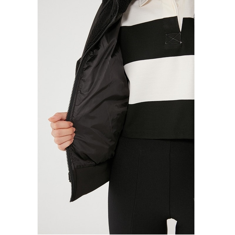 Mavi Peluş Detaylı Dik Yaka Siyah Kadın Ceket (110860-900)
