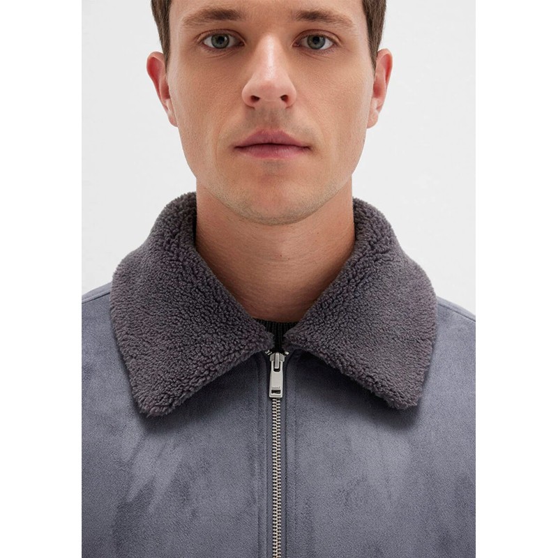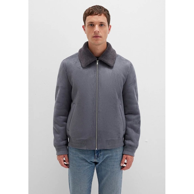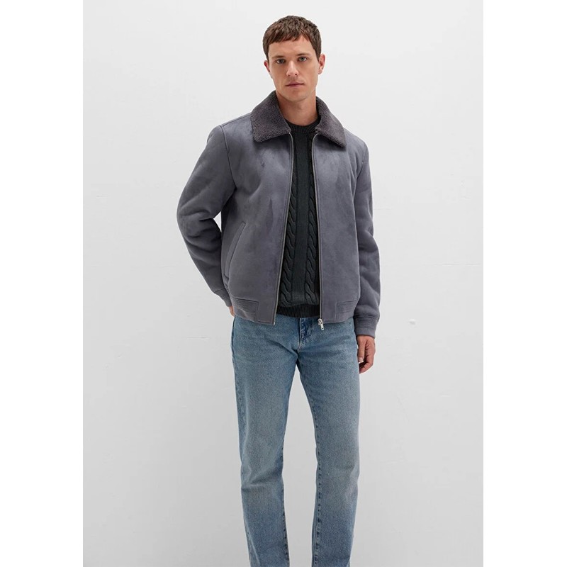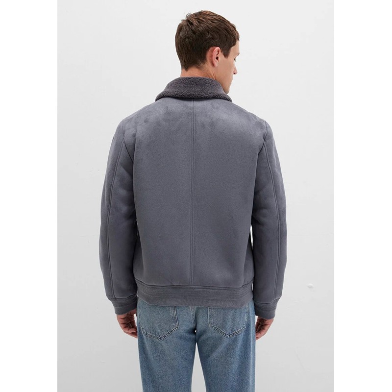 Mavi Suni Kürk Detaylı Erkek Suni Süet Ceket (M0110450-80776)