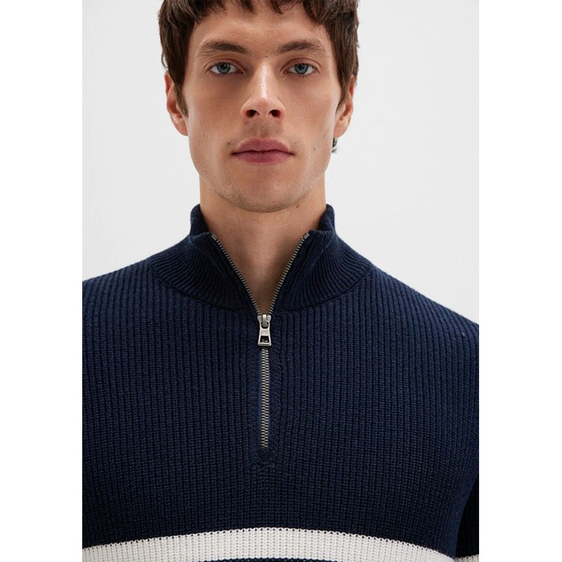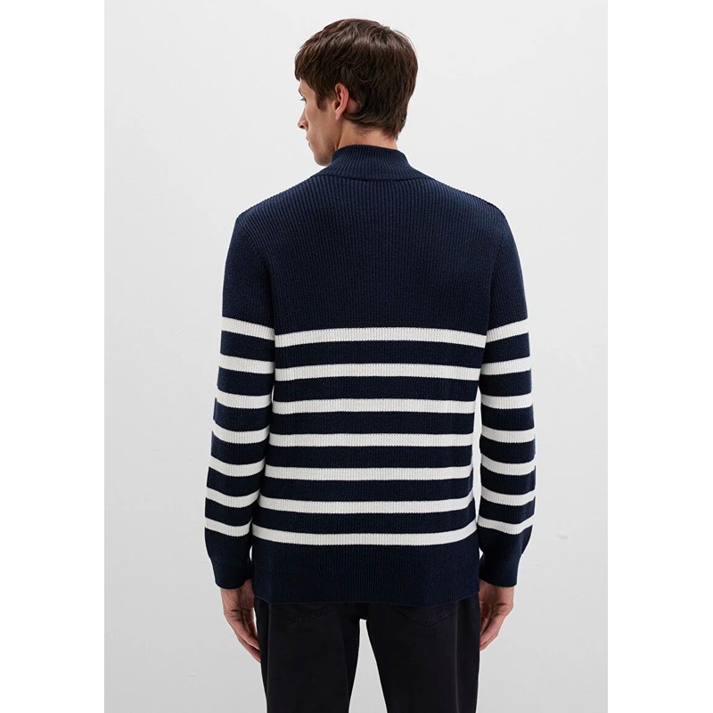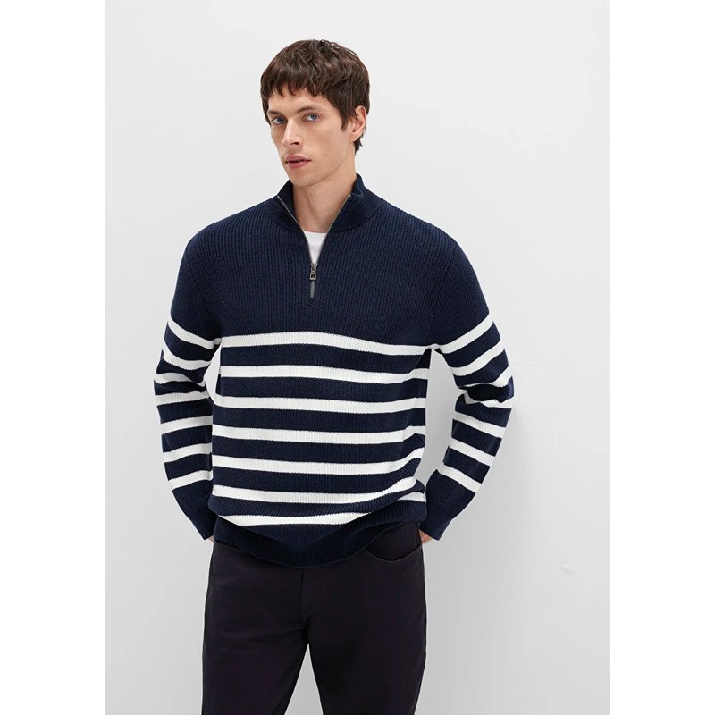 Mavi Yarı Fermuarlı Çizgili Erkek Kazak (M0710131-70490)