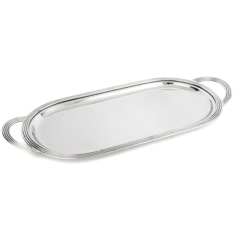 Mikasa Moor P341.379124 Gümüş Oval Kulplu Metal Tepsi 58x26cm