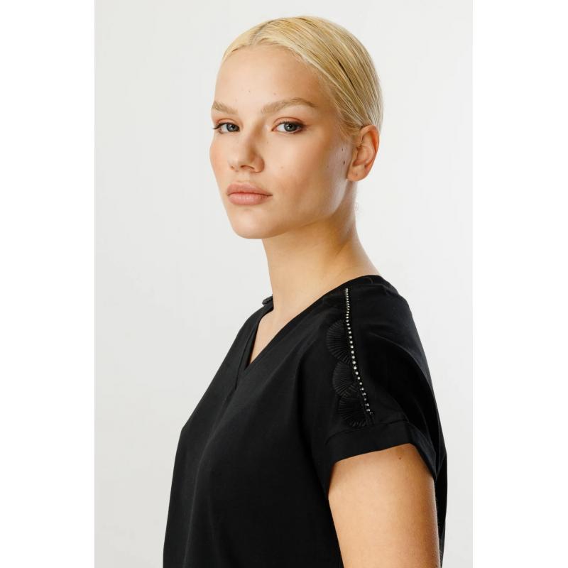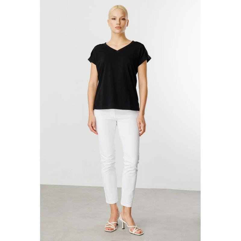 On Fashion V Yaka Omzu Taşlı Fırfır Detaylı Kadın T-shirt 25Y.ON.BLZ.51416.01 (25Y.ON.BLZ.51416.01)
