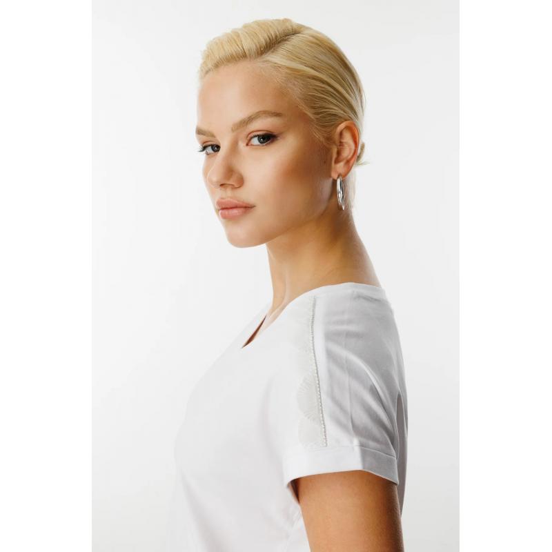 On Fashion V Yaka Omzu Taşlı Fırfır Detaylı Kadın T-shirt 25Y.ON.BLZ.51416.01 (25Y.ON.BLZ.51416.01)