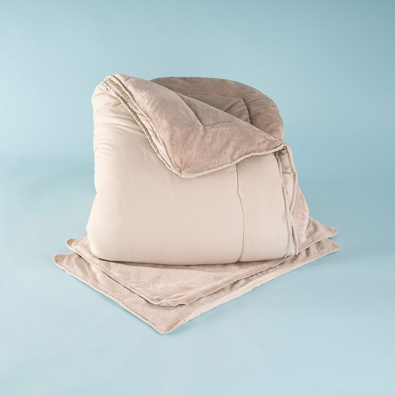 Bir yorganın bir yüzü plush kumaşlı ve diğer yüzü mikro elyaf kumaşlıdır. Bu yorgan, 250gr/m2 mikroelyaf dolgusuyla soğuk havaların geldiği mevsim geçişlerinde mükemmel bir seçenektir.
