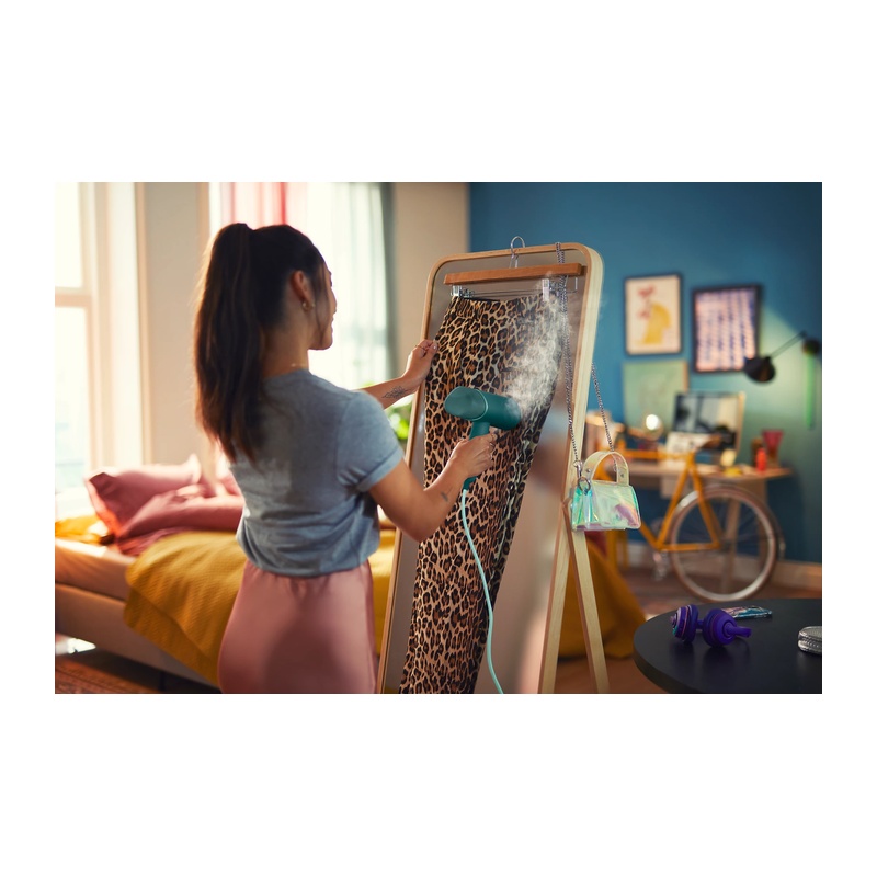 Philips 3000 Serisi el tipi buhar üretici, seyahat ederken kullanmak veya ürünü evde kolayca saklamak için kullanışlı bir çantaya sahiptir.