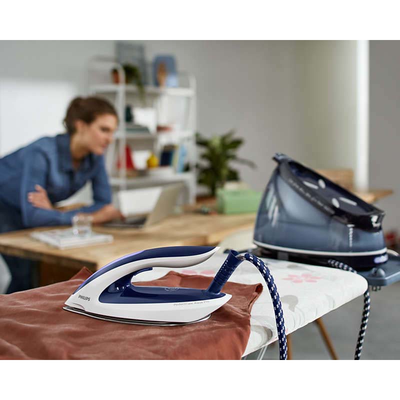 Devrim niteliğindeki teknolojiyle son derece hızlı bir ütüleme deneyimine kavuşun. Güçlü ve sürekli buhar en zorlu kırışıklıklarla bile baş eder, kalın kumaşlar hızlı ve kolayca ütülenir. Gerekirse dikey ütüleme veya inatçı kırışıklıklar için ideal olan ekstra buhar püskürtme özelliği de vardır.