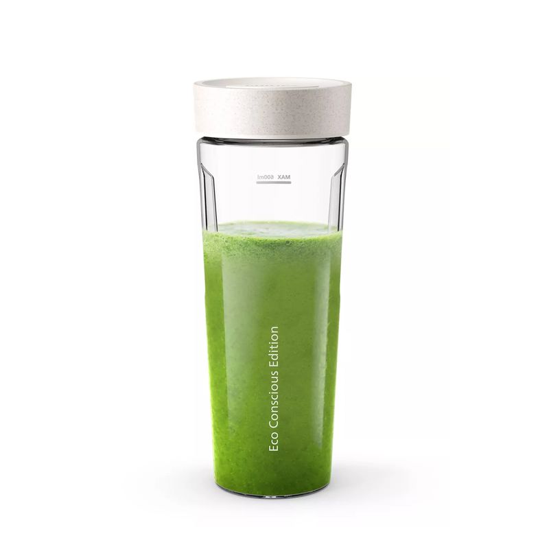 Biyo bazlı plastikler*, ayçiçeği yağı gibi biyolojik ve yenilenebilir kaynaklardan üretilmiştir. Yemeklerden arta kalan kullanılmış yağ, toplanıp yiyeceklerle temas için uygun hale getirilmek üzere çevre dostu bir işlemle geri dönüştürülmüştür. Blender sürahisi, Tritan Renew ile BPA içermeyen ve her türlü yiyecekle temasa uygun şekilde tasarlanmıştır.