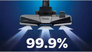 TriActive+ başlık ve ekstrem emiş gücü, ince tozların %99,9"unun** süpürülmesini sağlar.