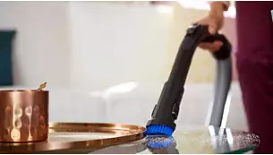 Tutma yerine yerleştirilen toz fırçası aleti mobilyalarınız, düz yüzeyler ve döşemeler için her zaman kullanıma hazırdır.
