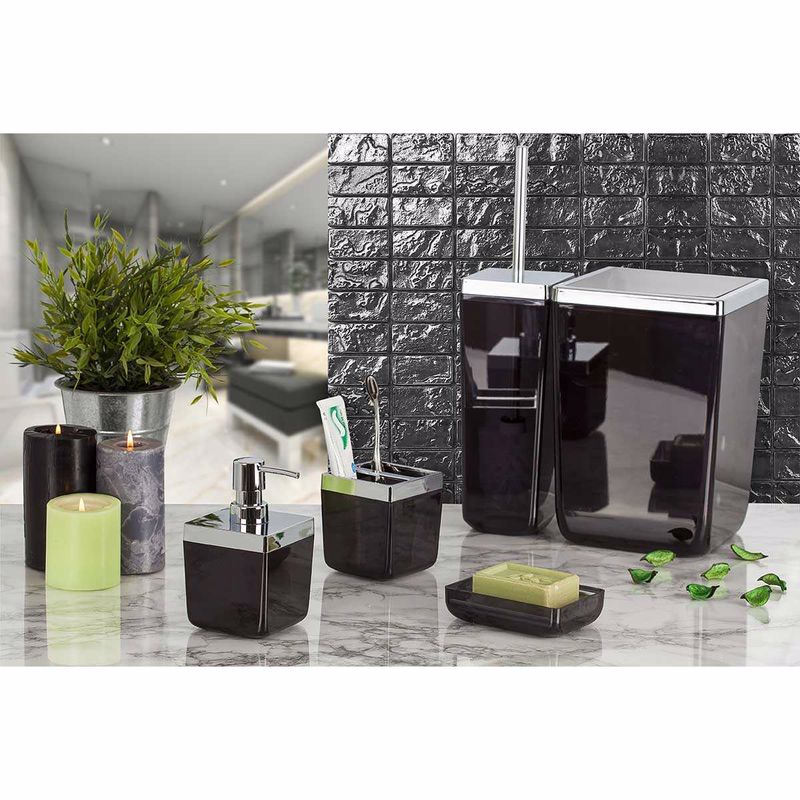 Sıvı sabunluk, Sabunluk, Diş fırçalık, Kapaklı kova, Tuvalet fırçası bulunmaktadır.