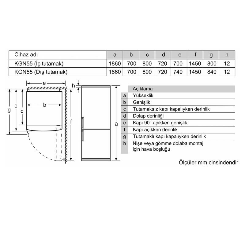 | Ürün Ölçüleri (Yükseklik x Genişlik x Derinlik) | 1860 x 700 x 800 mm |