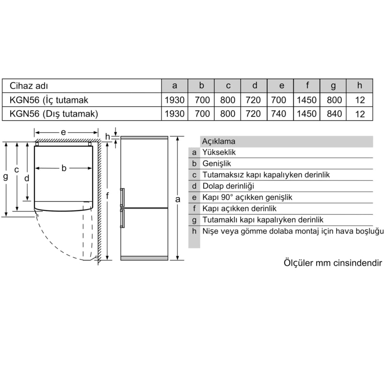 | Boyutlar (YxGxD) | 1930 x 700 x 800 mm |