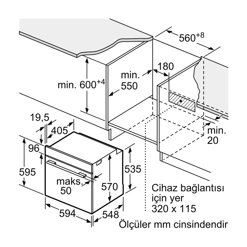 | Ürün Ölçüleri (Yükseklik x Genişlik x Derinlik) | 595x594x548 mm |