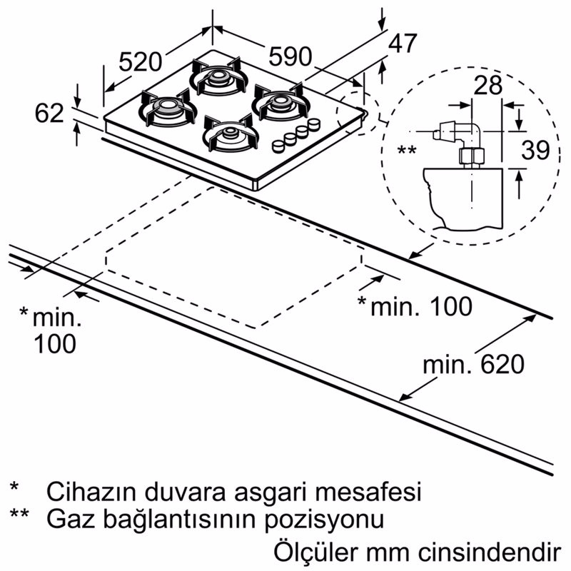 | Gaz bağlantı değeri | 7.500 W |
