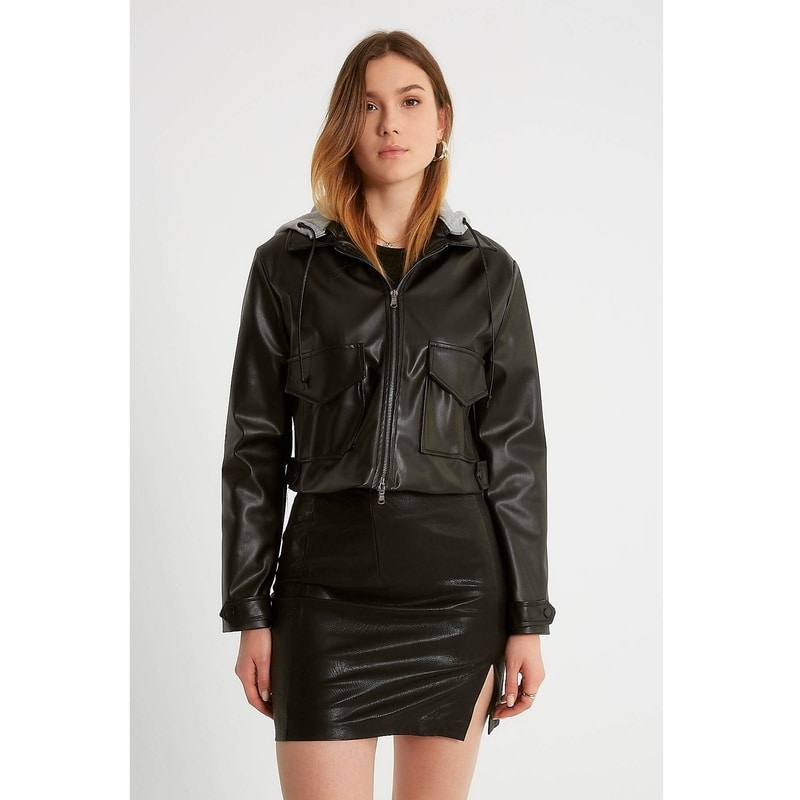 Robin Kapüşonlu Kadın Deri Mont (D89652)