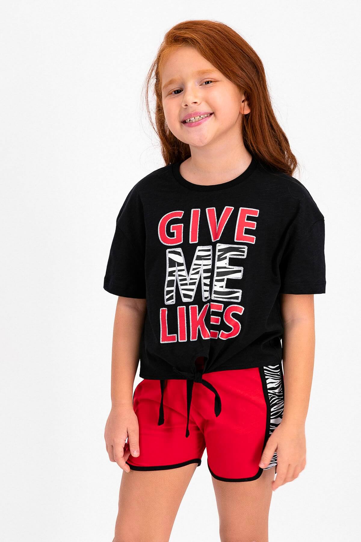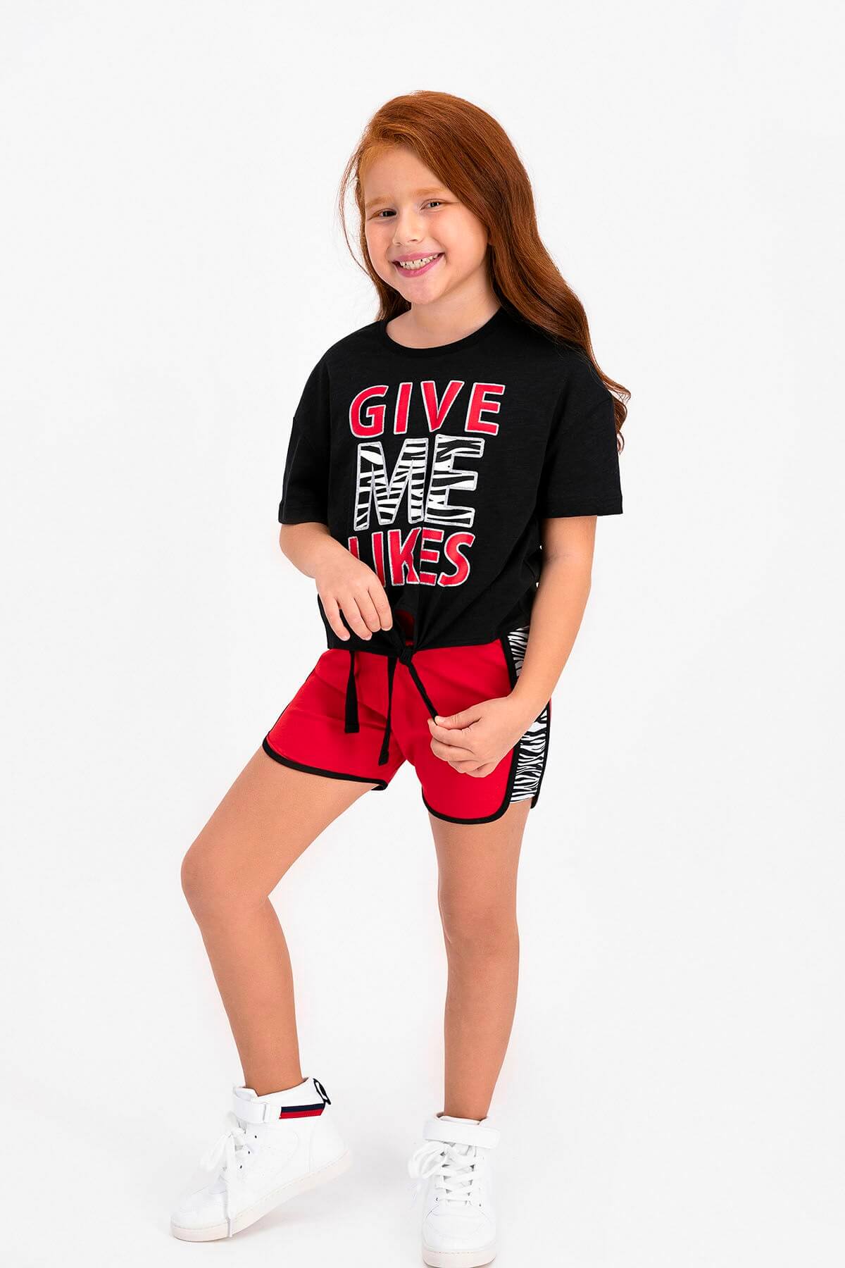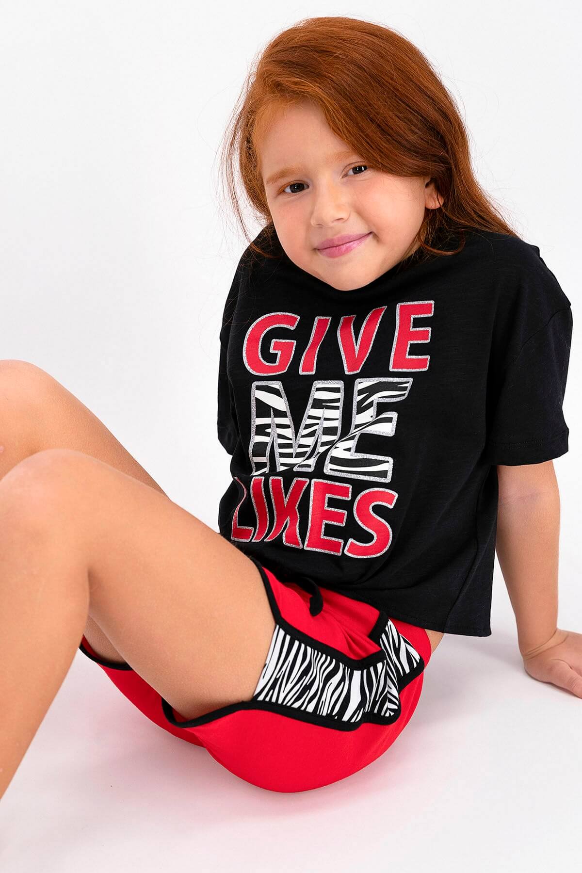 Rolypoly Give Me Likes Siyah Kız Çocuk Şort Takım (RP2484-2-V2)