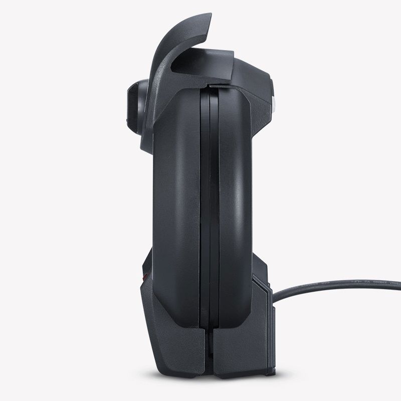 İstenen kızarma seviyesini seçmek için değişken sıcaklık kontrolü. İki renkli bir elektronik pişirme ışığı, waffle'ların dışı çıtır ve içi hala yumuşak olduğunda sinyal verir. Yapışmaz kaplama temizliği kolaylaştırır.