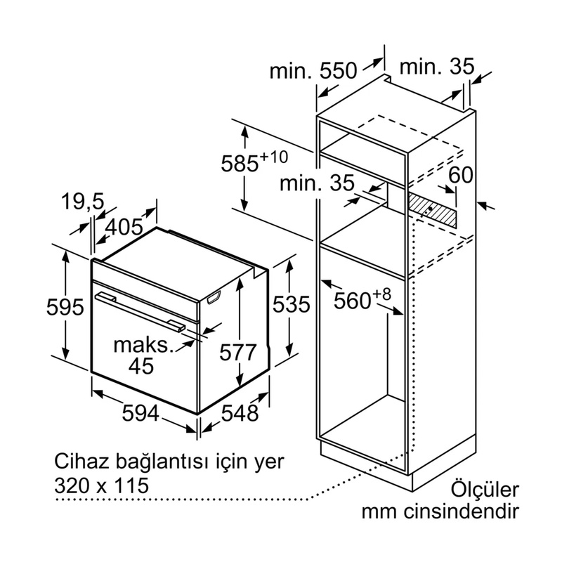 | Montaj için minimum genişlik | 560 mm |