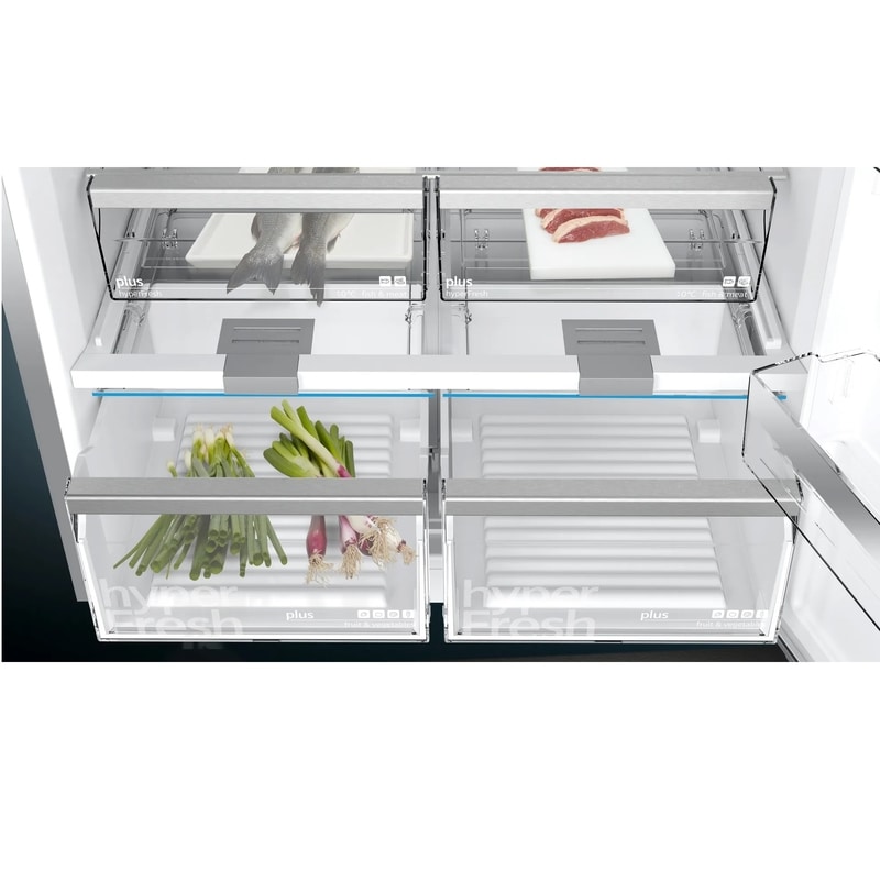 Nem oranı ayarlanabilir hyperFresh plus çekmecesi sayesinde meyve ve sebzeler iki kata kadar daha uzun süre taze kalır.