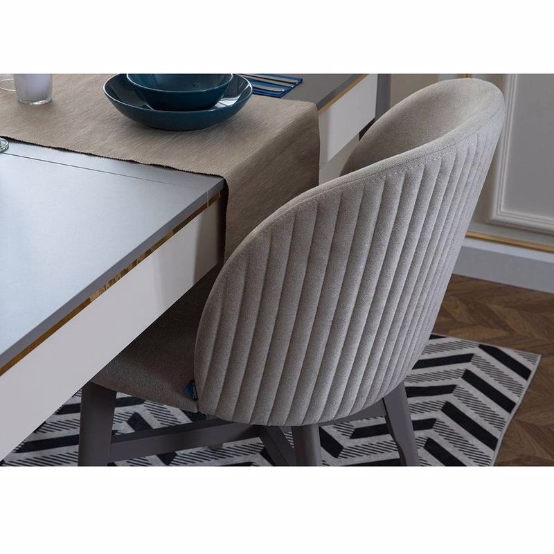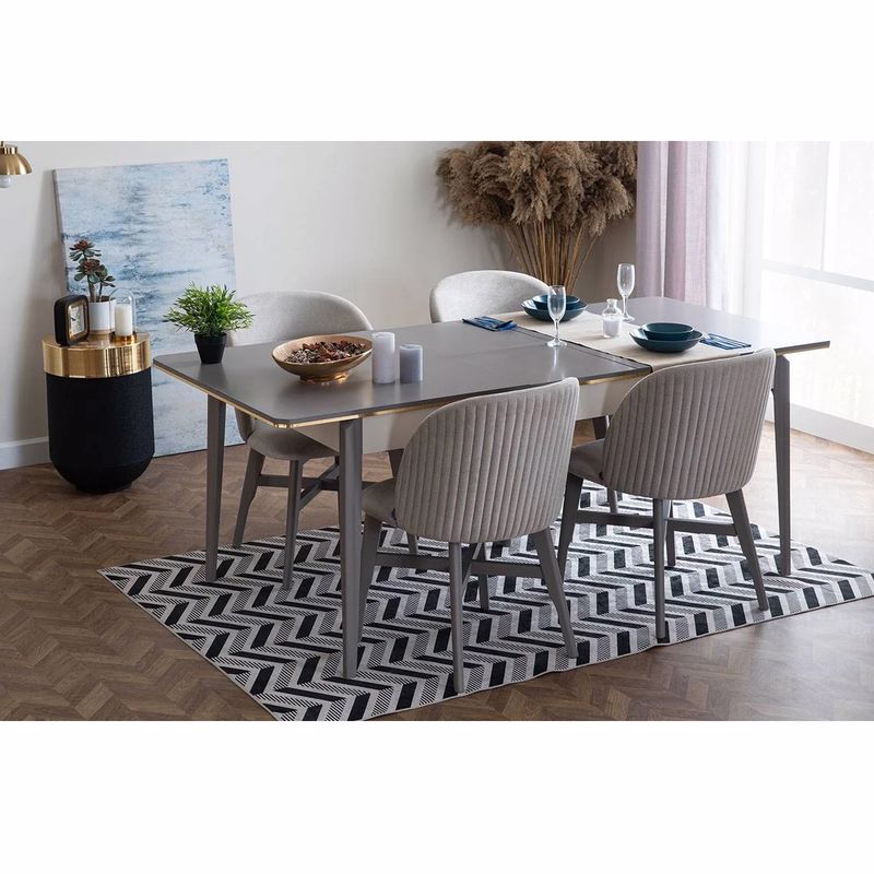 Sadece şık tasarımı ve kalitesiyle değil, kullanılan malzemelerin dayanıklılığı ve uzun ömürlü olmasıyla da öne çıkan bu yemek odası takımı, evinize özel bir dokunuş katıyor. Gri tonlarındaki modern tasarımı, tamamlanarak lüks ve zerafetin buluştuğu bir atmosfer yaratıyor.